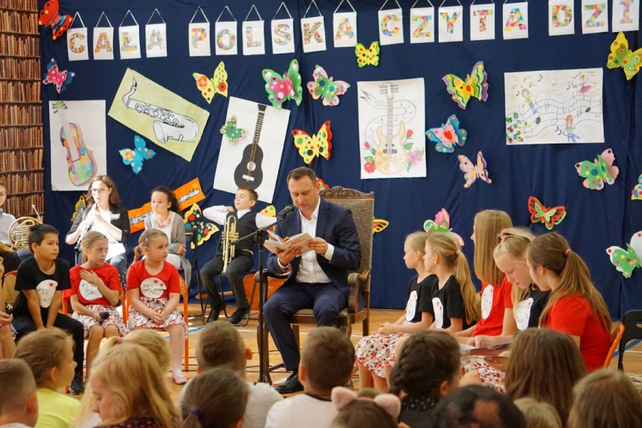Pierwszy Wiceprezydent Miasta Łodzi Tomasz Trela i radny Rady Miejskiej w Łodzi Sylwester Pawłowski, wraz z innymi samorządowcami i społecznikami czytali najmłodszym mieszkańcom Łodzi książkę pt. "Wesołe instrumenty" autorstwa Alicji Twardowskiej i Wojciecha Próchniewicza.